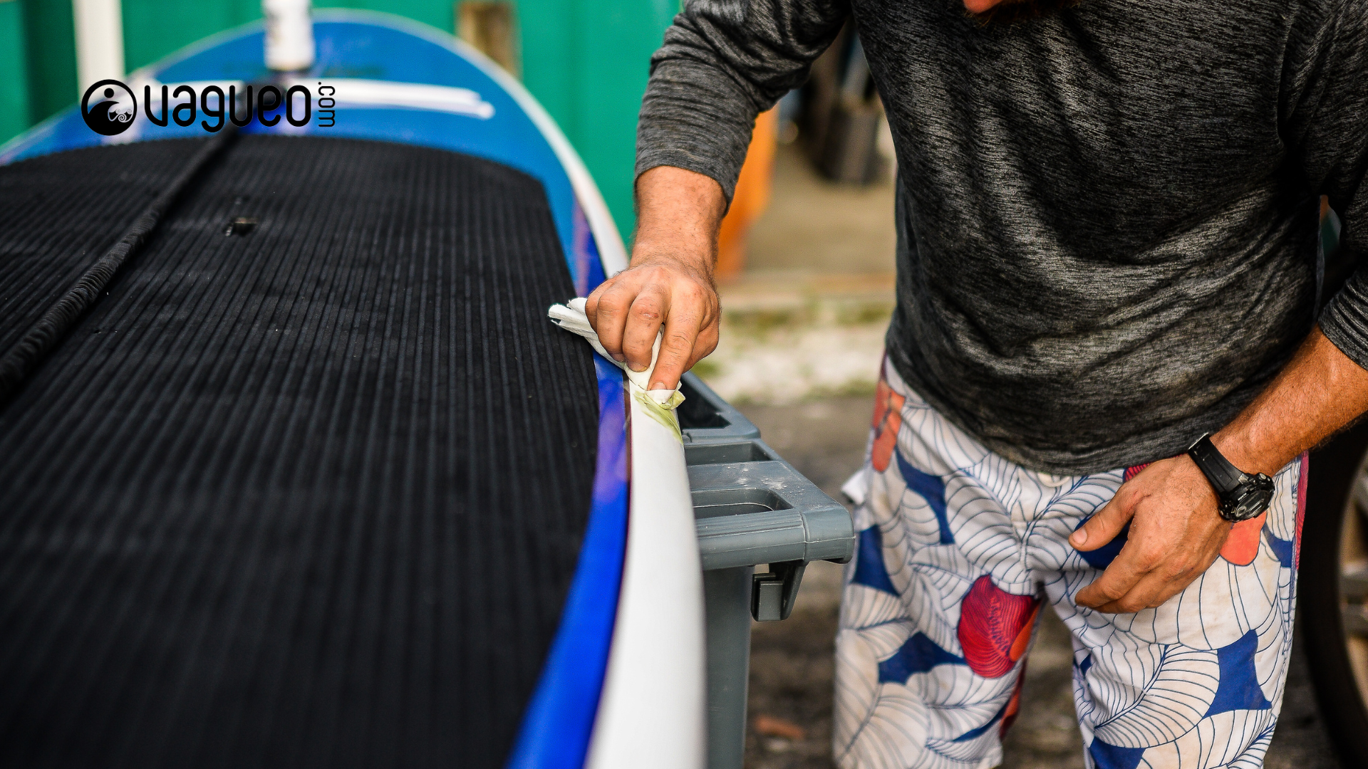 La première chose à faire est de dégonfler complètement votre paddle. Cela permet de travailler plus facilement sur la zone à réparer et évite d’aggraver les dommages. Une fois dégonflé, nettoyez la zone autour de la fuite ou de la déchirure avec un chiffon doux et de l’eau claire pour éliminer toute saleté ou sable.